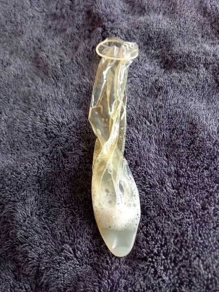 Op bestelling Vol Sperma gespoten Neuk Condoom of een potje vol klaarkom geil Sperma Squirt of Piss van Jado of Sendy of van ons beide??